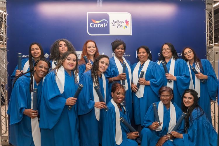 “A palavra que define meu momento atual, desde que iniciei o curso, é transformação. Esse projeto tem mudado minha vida em todos os sentidos”. O relato é de Luciana Pereira da Silva, 44 anos, uma das 15 formandas da segunda turma do Coral Mulheres na Cor, programa de treinamento de mulheres em situação de vulnerabilidade para capacitá-las como pintoras decorativas profissionais. Idealizado pela AkzoNobel, por meio de sua marca de tintas Coral, e reunindo diversas empresas nessa jornada, a iniciativa realizou, no dia 16 de outubro, a formatura das participantes, que marca a conclusão do curso e o início de novas possibilidades para elas.