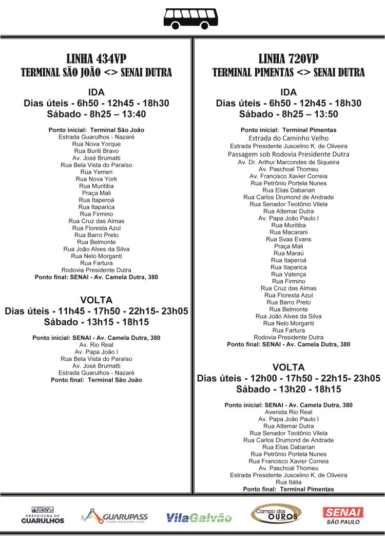 Horário dos Ônibus - Ponto SENAI - SENAI Guarulhos - Dutra 19/09/2023 - atualizado às 14:37 em 30/11/2023